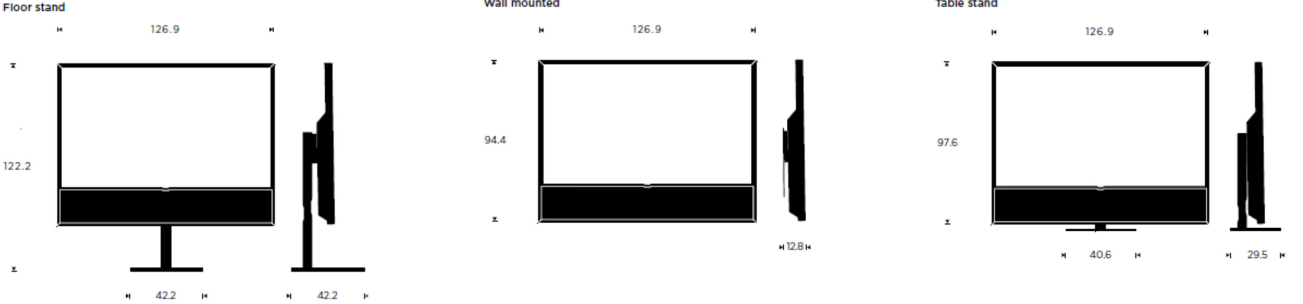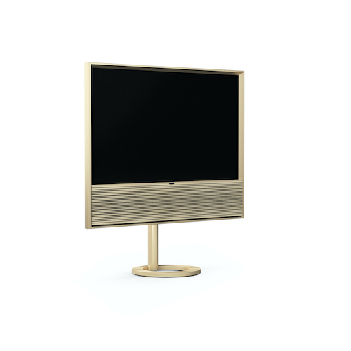 Het karakteristieke aluminium frame is in diverse kleuren verkrijgbaar die zijn afgestemd op exclusieve stoffen of houten luidsprekerpanelen. Verder zijn er drie mogelijkheden om de tv te plaatsen: een vloerstand, een tafelstand en een muurbeugel.