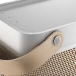 De Beolit 20 is gemaakt van exclusieve, maar robuuste materialen. De behuizing is gemaakt van geanodiseerd aluminium in combinatie met stevig polymeer, zodat hij wel tegen een stootje kan. En met het stijlvolle handvat van echt kernleer kun je hem overal mee naartoe nemen. Als je een telefoon of koptelefoon op de bovenplaat legt, laadt hij draadloos op via de Qi-oplaadfunctie.