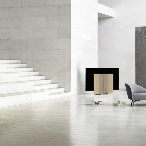 ‘Onberispelijke beeldprestaties in combinatie met werkelijk meeslepend geluid zorgen voor een betoverende kijkervaring. Maar de aanwezigheid van een groot scherm is zelden een welkome aanvulling op woonruimtes. Met de Beovision Harmony wilden we een zinvol design object creëren voor het interieur dat de visuele aanwezigheid van de tv vermindert en transformeert in iets waarmee mensen een emotionele band zullen ontwikkelen’ aldus het verhaal van John Mollanger, Bang & Olufsen’s Executive Vice President Brand en Markets.